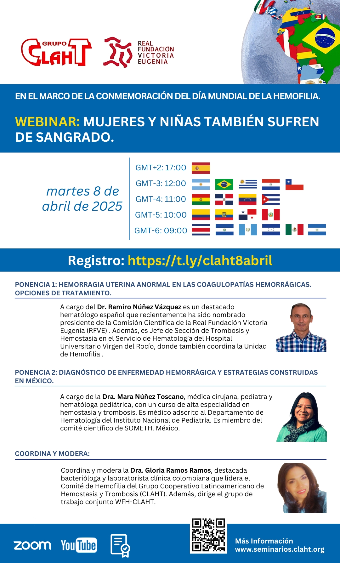- Dra. Gloria Ramos Ramos. Bacterióloga y laboratorista clínica. Lidera el Comité de hemofilia del grupo CLAHT.